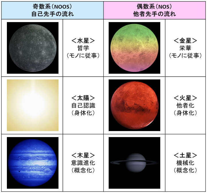 これらの惑星とヌーソロジーの元止揚との関係は以下のようになる。
